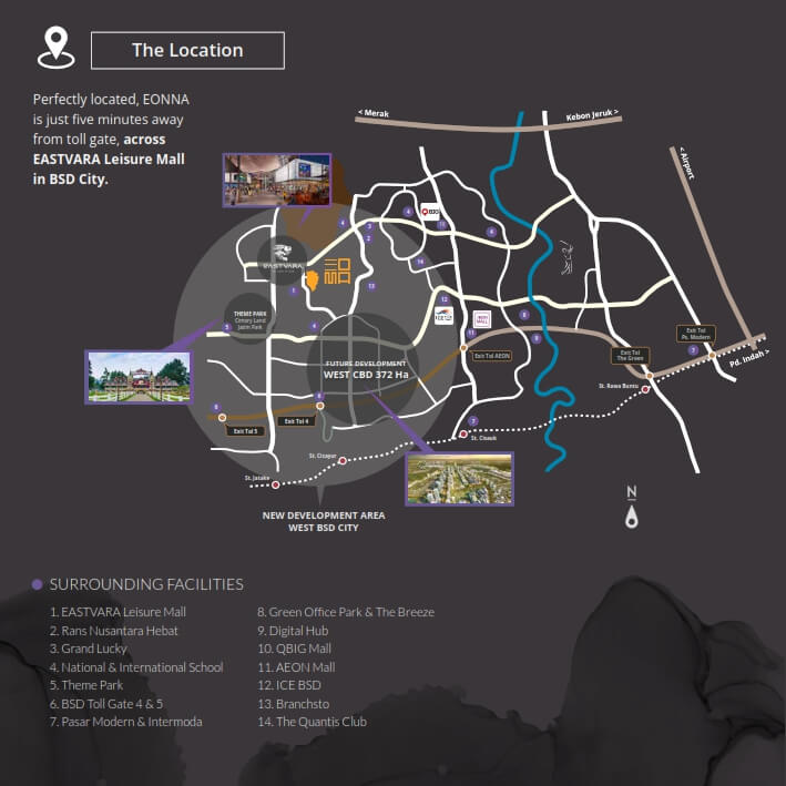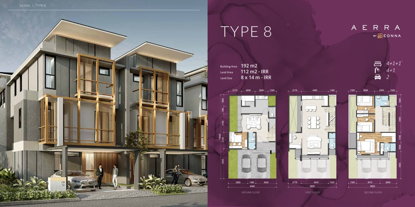 Cluster Aerra memiliki konsep rumah kontemporer tropika modern kontemporer. Fitur Breathing Living Space dan Inner Courtyard juga tersedia dalam Tipe Lebar 8. Hunian eksklusif dan mewah dari Eonna BSD memiliki banyak fasilitas dan lokasi yang dirancang dengan baik.